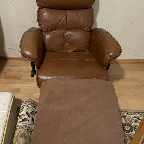 Myydään hyvässä kunnossa oleva nojatuoli ja rahi. Kauniin retron värinen ja mukava istua. Tukeva. Kangas hiukan repeytynyt ja nipsulla yhdessä kohta kiinni, kun yksi ruuvi puuttuu, ei haittaa käyttöä. Narisee hiukan. Pientä käytönjälkeä. Muuton alta äkkiä pois