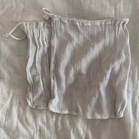 Uudelleenkäytettävä, pestävä hedelmä- ja vihannespussi on kauppareissujen kestävä valinta. Kaksi eri kokoa 25 x 25 cm ja 25 x 35 cm. Tuotteen valmistuksessa on käytetty kierrätyspuuvillaa. Materiaali: 75 % puuvilla, 25 % polyesteri.
