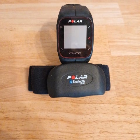 Käytetty musta Polar M400 -urheilukello, jossa on GPS-toiminto. Ollut pitkään käyttämättömänä.