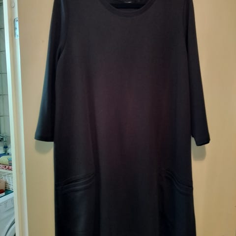 Myydään kaulukseton mustapohjainen pitkä tunika. Koko n. 38. Materiaalina on 100 % viskoosi. Ylhäällä on kiinnityksenä iso musta nappi ja 3 mustaa painonappia. Alaosassa on upotetut sivutaskut ja sivuhalkiot. Pitkähihaisessa tunikassa on pieniä monivärikuvioita mustalla pohjalla. Pituus n. 84 cm, leveys kai-kai n. 62 cm ja helman leveys n. 62 cm. Tunikaa on käytetty vain muutaman kerran. Terassinouto Paloheinästä (Helsinki) ja maksu 15 e käteisellä.
