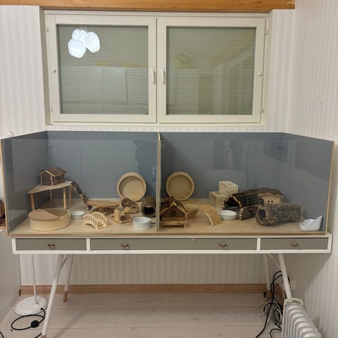 Ikean Fabrikör vitriinistä tehty terraario esim. hamsterille. Koko: leveys n. 115cm, korkeus n. 40cm ja syvyys n. 51cm. Huom! lasit melko ohutta. Vain nouto.