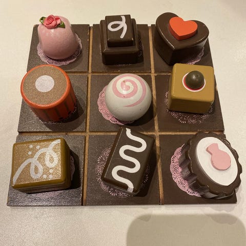 Myydään 6 kpl puisia leikkimacaroneja / kakkuja.
