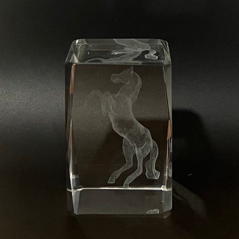 Täysin ehjä (kuvien mukainen) kristalli hevosenpää figuuri.