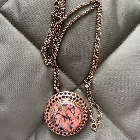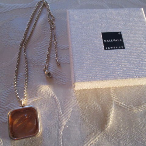 Necklace with a rare pendant. No longer produced. Pendant length about 10 cm. Chain length 70 cm. Pure silver. Made by the Finnish company Kalevala. Worn twice and kept in a drawer