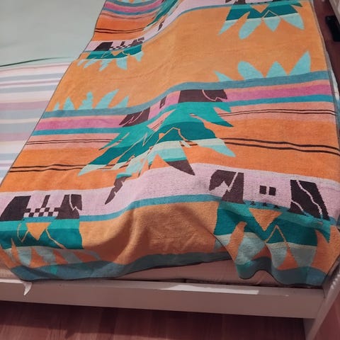 Talven lomareissuille! Iso rantapyyhe - samettinen pinta toisella puolella, toinen puoli froteeta (100 % puuvilla).