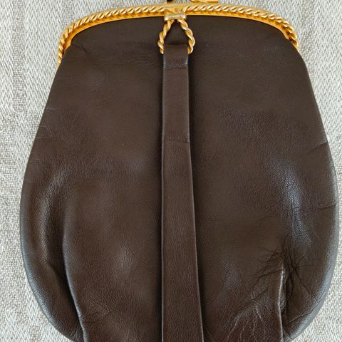Vanha Suomen Yhdyspankin kukkaro. Koko n. 9 cm x 8 cm. Ruskeaa nahkaa. Logo melko hyvässä kunnossa.