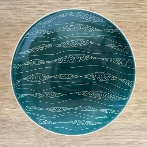 Arabia Siena ruskea, design Raija Uosikkkinen. Käsin raaputus koristeet, korkeus 12 cm.
