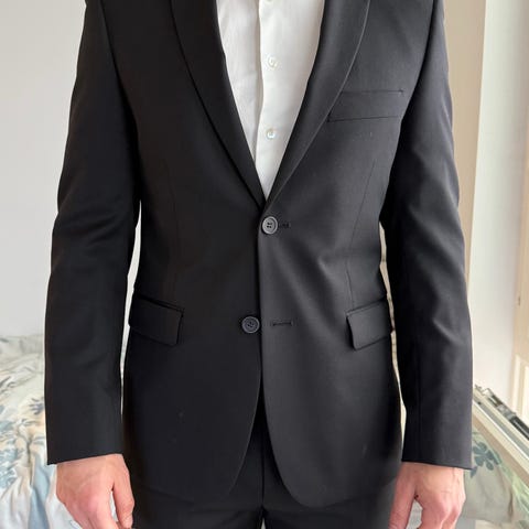 Dressmann puvun takki ja housut. Miellyttävä silkkinen pinta, uudenveroiset. Kaksi kertaa käytetty.