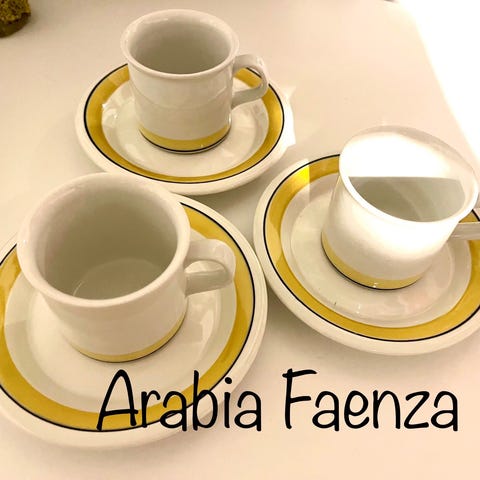Arabia Faenza ruskeakukka 2kpl kahvikupit & leivoslautaset
