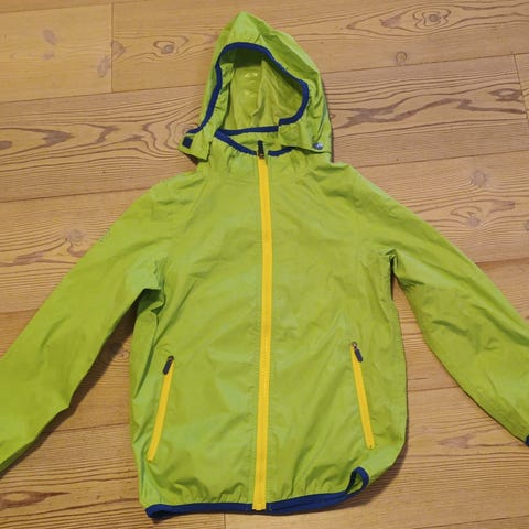 Kirkkaanvihreä tuulenpitävä ohut takki, koko (arviolta) 116-120 cm