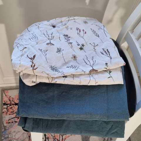 Vauvan peitto ja pussilakanoita.