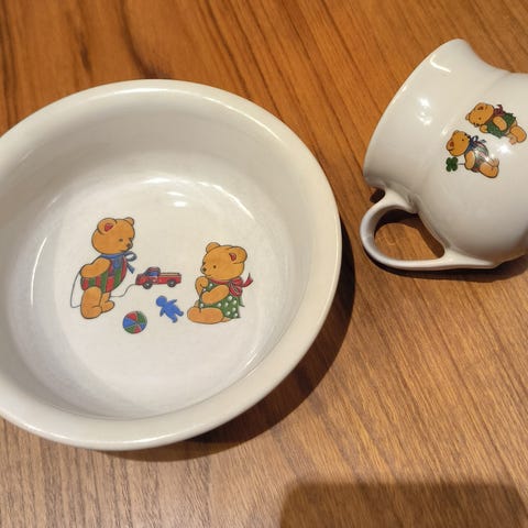 Kermansaven suloinen Nalle kuppi -ja lautassetti