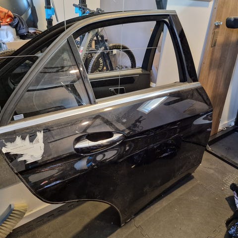 Kuvan ovipahvi / oven verhoilu. Kahvassa painike istuimen lämmittimelle.