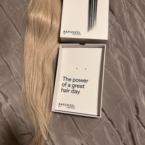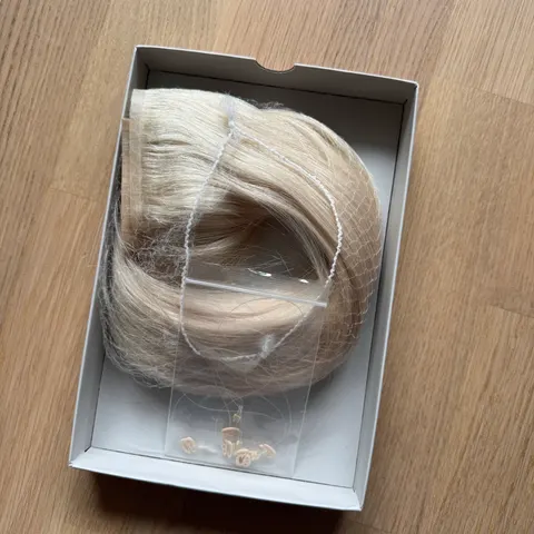 Vain muutamia kertoja käytetty Rapunzelin Sleek hairband. Väri 10.7 Light Grey ja pituus 50cm. Sopii hyvin henkilölle joka ei halua pysyvään pidennystä. Tällä saa todella näyttävät hiukset ilman omien hiusten rasitusta.