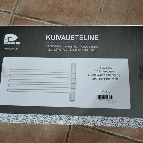 Myydään Sini teleskooppikuivausteline. Asennus kahden seinän väliin. Säästää tilaa lattialta kun pyykit kuivuvat katonrajassa.