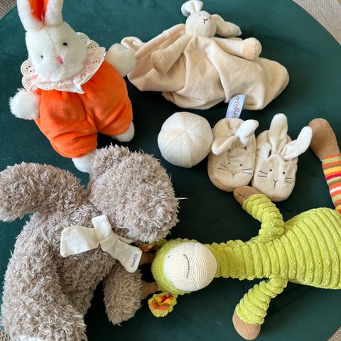 Kuvassa olevat pienen rahisevat, rapisevat yms. Pehmot ja unikana. Kaikki yht. 10e. Yksittäin 1-2e/kpl. Mukana mm. Ainu keinuheppa ja Ainu ensipupu käsihelistin. Ampiainen myyty, muut jäljellä. Nouto tai postitus. Kulkeutuu myös Turkuun omien menojen mukaan.