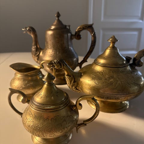 Kaunis antiikkinen hopeoitu teekannu- ja kahviastiasto (EPNS)