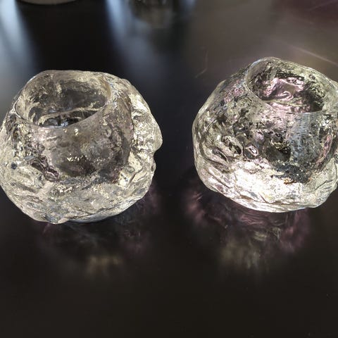 Koristeellinen metallinen kynttilänjalka punaisin helmin