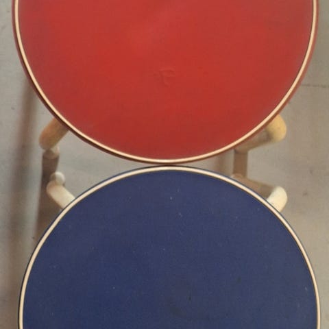 Kaksi 1960--70-luvun talousjakkaraa. Hinta 15 euroa kpl. Raasepori. Fiskars. Kulkeutuu omien menojen mukana lähialueille. Muualle sovittavissa. Edit. Vihreä myyty.