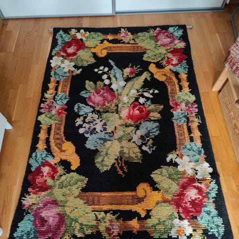 Iso hyväkuntoinen ruusuryijy, kuvassa ryijyn koko. Nouto.