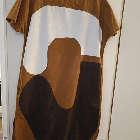 Kainalo-kainalo 37 cm, olka-helma 87cm. Voi käyttää tunikan tapaan tai lyhyenä kesämekkona. Ihana kuosi.