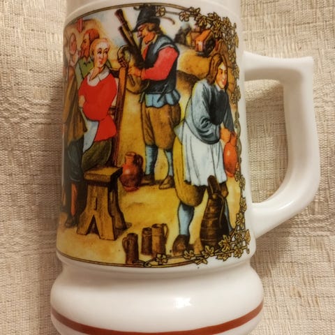 Great Corby 1875 oluttuoppi, valmistettu tinasta. Tuopissa on tummunut kahva ja kaiverrus, joka osoittaa valmistusvuoden 1875. Sopii koriste-esineeksi tai keräilykappaleeksi. Korkeus 14 cm. Pint tuoppi.