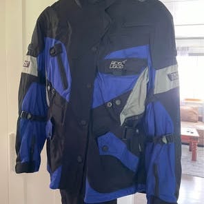 Takissa olkapää- ja kyynärpää suojat, irrotettava lämpövuori, vedenpitävä, koko xl. Housuissa polvisuojat, irrotettava lämpövuori, vedenpitävä koko xl. Nouto