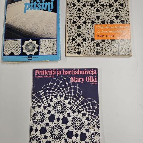 Mary Olki: Kirjokintaita ja muita kansanomaisia neuletöitä. 1953. 8. painos. 81 sivua.