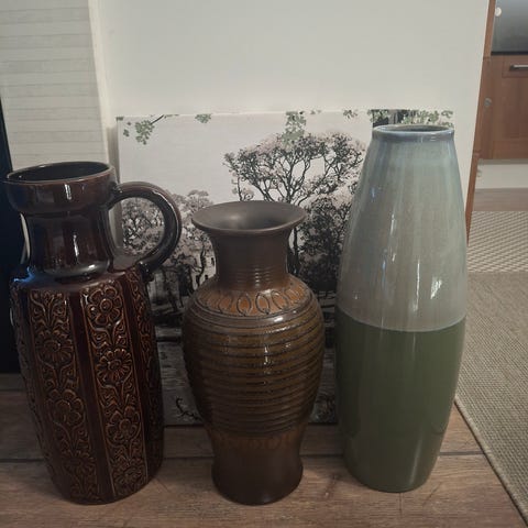 Komea ja painava musta maljakko.