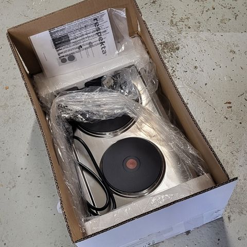 Kaksi levyä,jääkaappi ja lavuaari toimii 220V . Leveys 100 cm, korkeus 86 cm ja syvyys 55 cm. Hana ja viemäriputki paikoillaan !