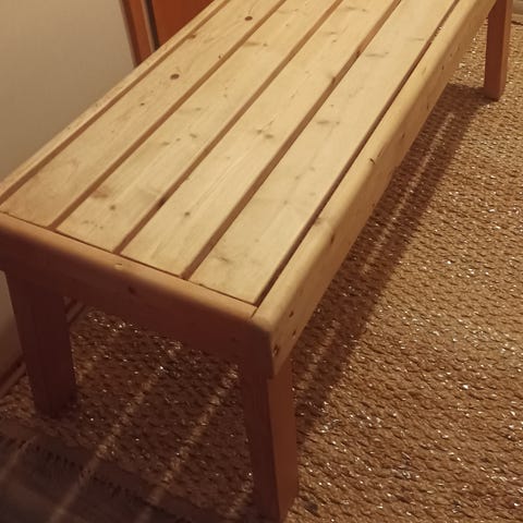 Vanha, jykevä penkki. Maalipinta kaipaa päivitystä. Ollut ulkokäytössä kesällä katoksessa. Pituus 150cm, korkeus 45cm.