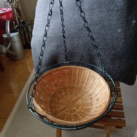 Punottu amppeli ja seinä kori.
