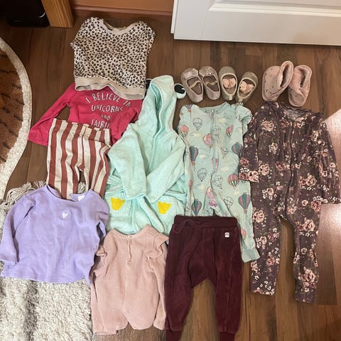 -kahdet sukkahousut (toiset vaalean roosat, toiset tummansiniset) koossa 62/68