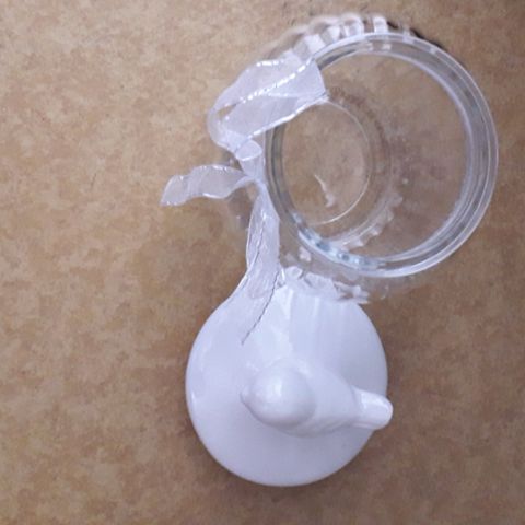 Lasipurkki. Korkeus 19cm, halkaisija 11cm.