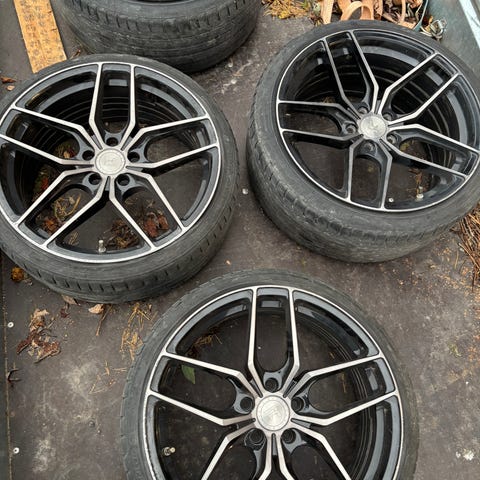 Maalatut vanteet joissa uudet kumit ja anturit paikoillaan voidaan vaihtaa f30 sopiviin 19-20”