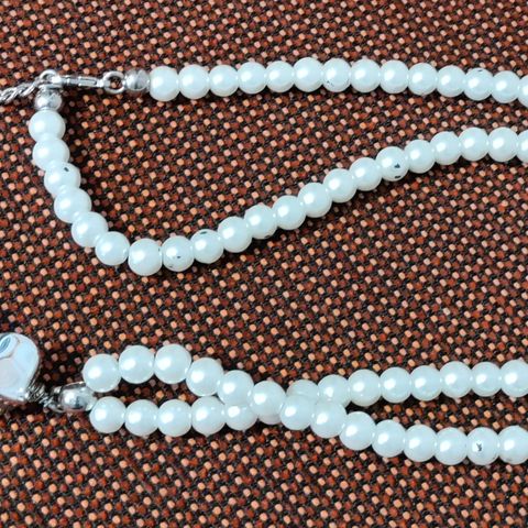 Mustavalkoinen pitkä helminauha, kokonaispit.n.80cm. Materiaali puuta ja jotain muuta.