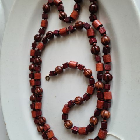 Pitkät puuhelmet, ympärysmitta n.74cm.