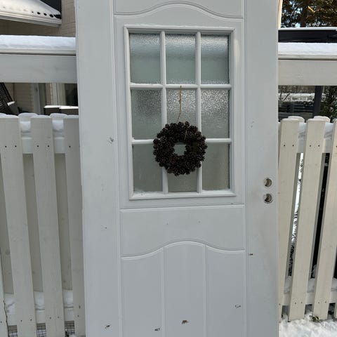 Väliaikainen ulko-ovi rakennustyömaalla esimerkiksi.