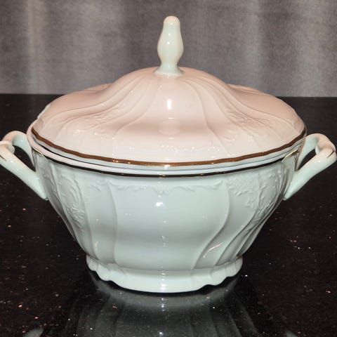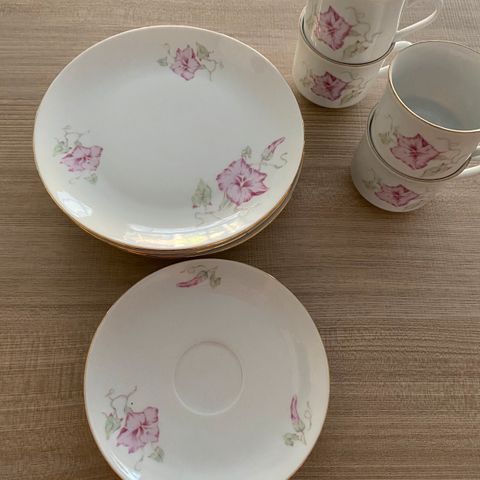 Myydään kaunis ja ehjä vintage astiasto Bernadotte-sarjasta, valmistettu Tšekkoslovakiassa.