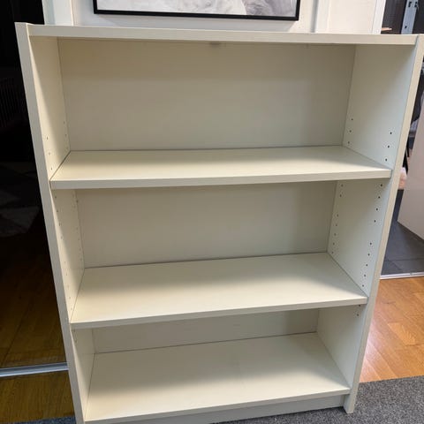 Mitat näkyvät kuvissa. Hylly sopii seinälle vaikka sängyn päälle. Varastohyllyksi, mihin ikinä hyllyä tarvitset. Kaksi tahraa puhdistettavissa. Yksi pieni kolhu häipyy varmaan maalilla.