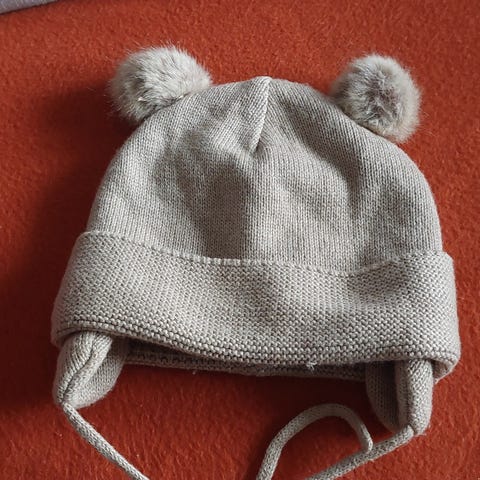 Pehmeä vuori fleeceä. Korvalaput suojaavat kylmältä ja tuulelta. Pallotupsu heijastavaa lankaa. Solmitaan leuan alta.