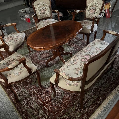 Sohva, tuolit ja pöytä