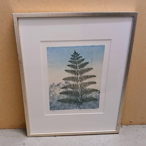 Inari Krohn sekatekniikka mitat kehysten päältä korkeus n.55cm leveys n.46cm kuva-ala n.30,5x21cm