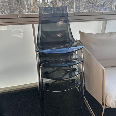 Myydään 6 ruokatuolia mustalla metallirungolla. Hinta per tuoli: 30 euroa.