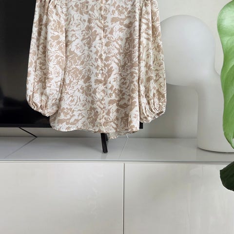 Kerran käytetty Free/Quent pusero. Puhvihihat, vajaamittaiset. Takana halkio jossa on nappi. Sopii n. 40 kokoiselle. Viskoosia.