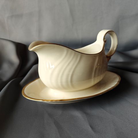 Arabian Kultakoriste-sarjan iso keitto-/soppakulho 1950–60-luvulta. Tilavuus noin 3 litraa. Kulho on hyvässä kunnossa, ei halkeamia tai lohkeamia, ja kannessa (kuva) kulkee särö, mutta ei ole helposti havaittavissa.