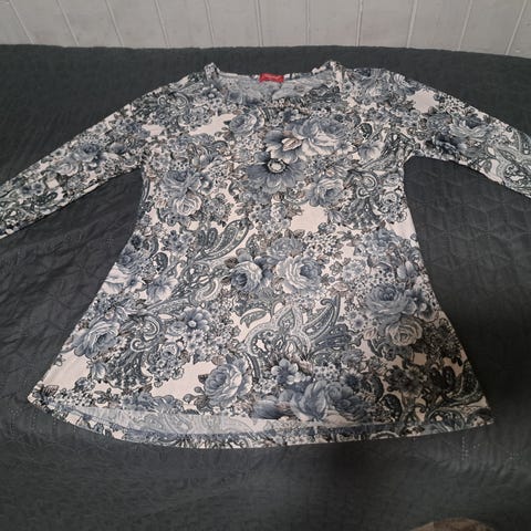 Myydään kuvan mukainen tunika. Kokolaput leikattu pois, mutta vastaa kokoa XL. Mitat kai-kai n. 59 cm ja olasta-helmaan n. 79 cm. Joustavaa kangasta.