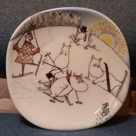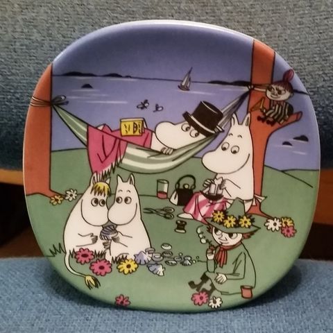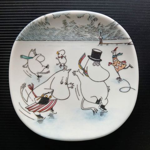 Arabia, Muumi "Kuutamolla" seinälautanen, suunnittelijat Tove Jansson ja Tove Slotte-Elevant, valmistus 1991-2005 lautasen halkaisija n.12cm