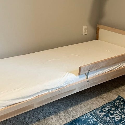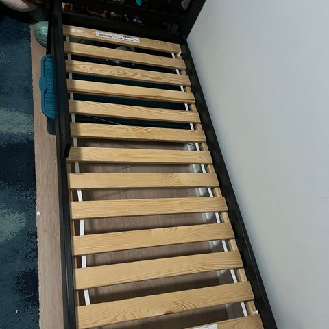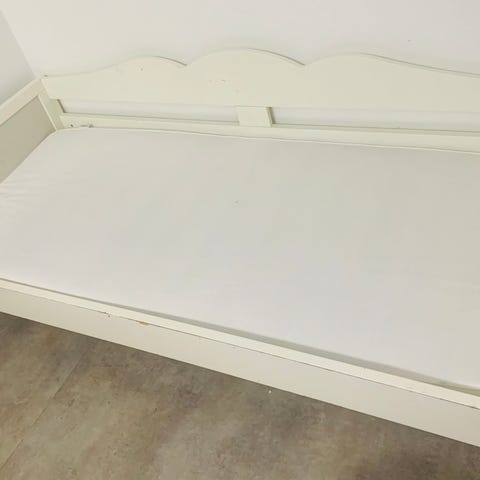 Sängyssä näkyy vähän käytön jälkiä,mutta niitä ei huoma ollenkaan. Tosi hyvässä kunnossa.Sänky purettu kuljetusta varten.