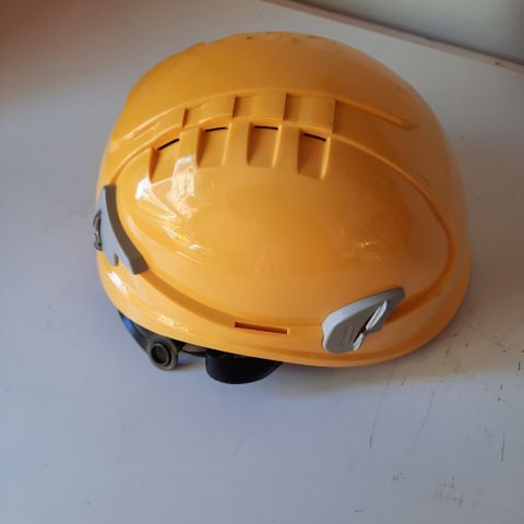 Uusi, käyttämätön Cerva Alpinworker suojakypärä. Väri keltainen.CE- hyväksytty. Mukana kirkkaat suojalasit, otsapehmuste, säädettävä.